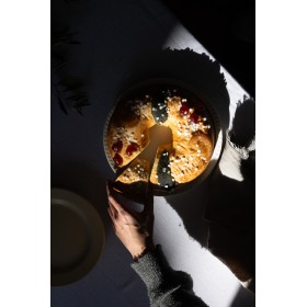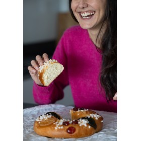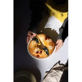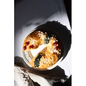 Dans nos ateliers, cette brioche moelleuse est façonnée et décorée à la main avec soin par nos artisans. Parfumée à la fleur d'oranger, son goût frais est relevé par la gourmandise de fruits confits soigneusement déposés un par un par les mains expertes des artisans de la Biscuiterie Castellane.